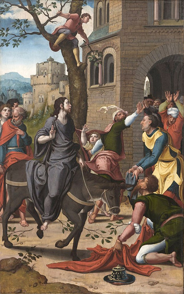Coecke van Aelst, Pieter, 1502-1550. Entry into Jerusalem, from Art in the Christian Tradition, a project of the Vanderbilt Divinity Library, Nashville, TN. https://diglib.library.vanderbilt.edu/act-imagelink.pl?RC=56865 [retrieved April 2, 2023]. Original source: https://commons.wikimedia.org/wiki/File:Entry_of_Christ_into_Jerusalem_by_Pieter_Coecke_van_Aelst_Bonnefantenmuseum_1246.jpg.