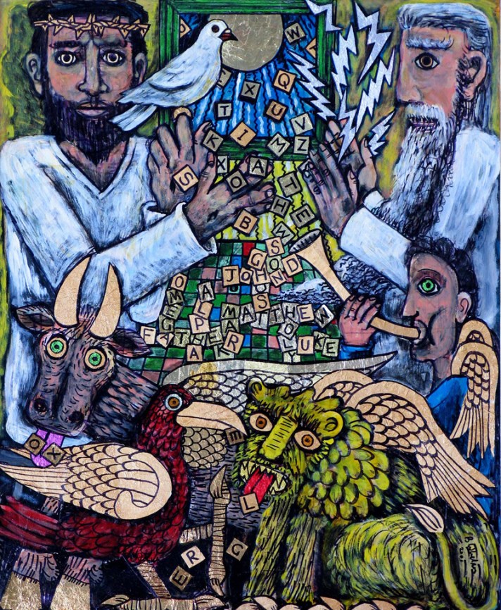 Whelan, Brian, 1957-. In the Beginning, from Art in the Christian Tradition, a project of the Vanderbilt Divinity Library, Nashville, TN. https://diglib.library.vanderbilt.edu/act-imagelink.pl?RC=57418 [retrieved December 31, 2022]. Original source: https://commons.wikimedia.org/wiki/File:Iin_the_beginning_34x28_by_Brian_Whelan.jpg – photographed by Wendy Roseberry with permission from Brian Whelan.