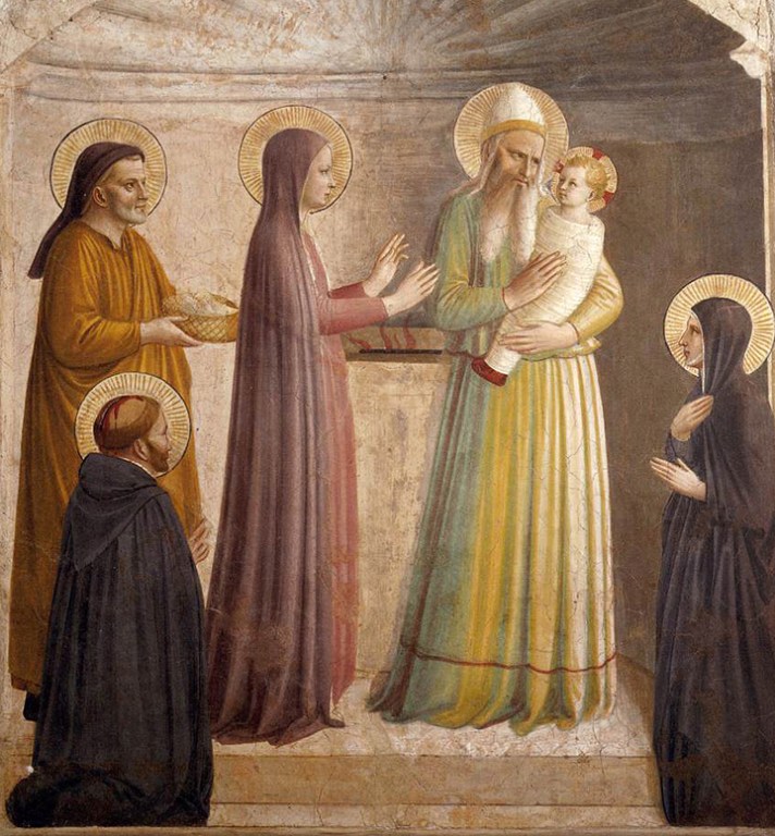 Angelico, Fra, approximately 1400-1455. Presentation in the Temple, from Art in the Christian Tradition, a project of the Vanderbilt Divinity Library, Nashville, TN. https://diglib.library.vanderbilt.edu/act-imagelink.pl?RC=47762 [retrieved February 1, 2025]. Original source: https://commons.wikimedia.org/wiki/File:Presentation_of_Jesus_at_the_Temple_by_Fra_Angelico_(San_Marco_Cell_10).jpg.