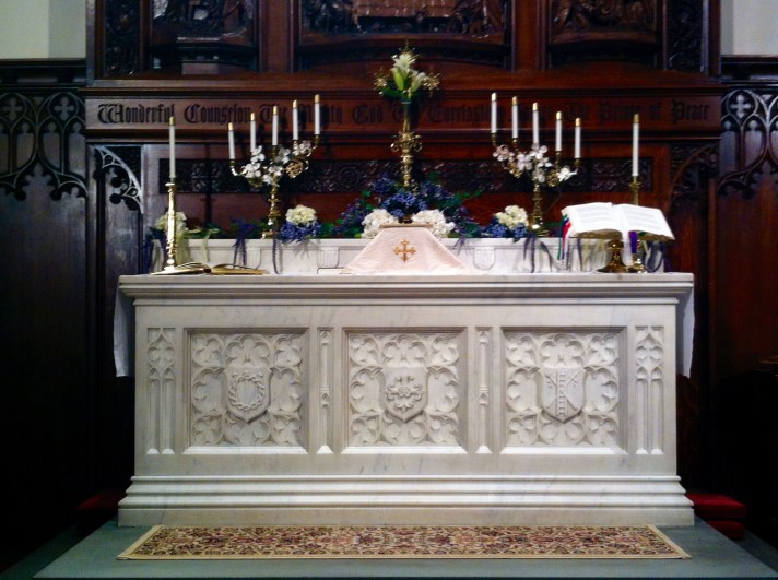 So, what are we to do? We keep the Feasts when they roll around, seemingly interminably, as best we can, knowing that God who made us knows us and loves us, loves us while knowing our humanity can only stretch so far. For this reason we follow the Anglican or Episcopal understanding of the glory Christ displays when he institutes the Sacrament of his Body and Blood. We wear white, and we sing the Gloria in excelsis Deo. We sing the best hymn of praise we know to thank God for not letting our shortcomings interfere with his love for us. We keep the color white for the purity and perfection of our Lord whose divinity supplies to us what our humanity can’t reach. We remember the words “in remembrance of me” because they were the words he used when he gave us himself, gave us the Sacrament to help us along, to help the very limitation we have which holds us back from growing up fully like him.